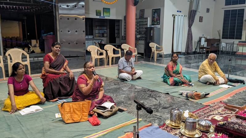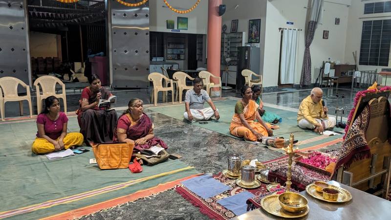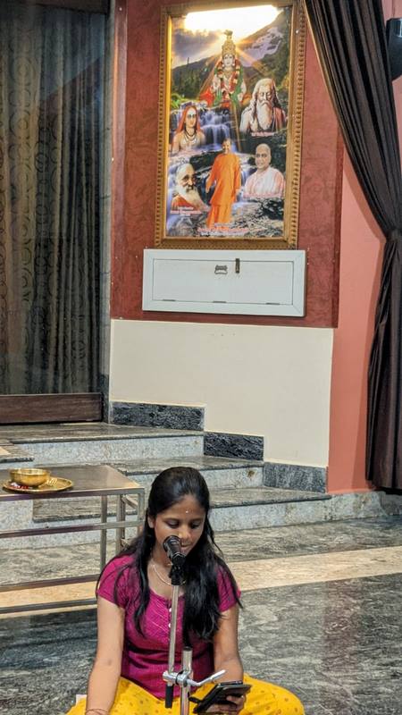 Paduka Puja with chanting of Bahagavn Adi Shankar ashtotharam was done. Jr. CHYK and Members reflected on Bhagavan Adi Shankara through his texts like Sadhana Panchakam, Bhaja Govindam and also through his life journey. Arathi was done.